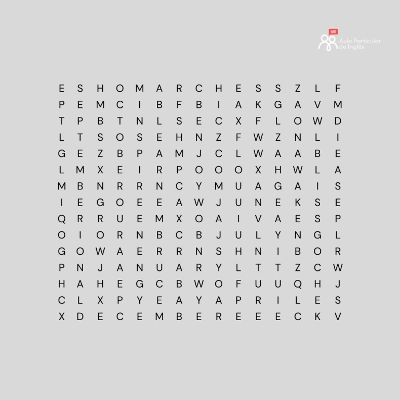 Estude e divirta-se caçando palavras dos meses em inglês